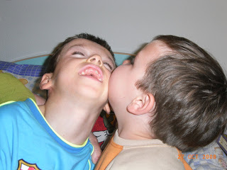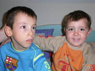 Mientras oian las canciones estuvieron jugando un rato encima de la cama a pelearse y aqui van dos fotos encantadoras que son prueba de ello. Espero que os gusten al menos tanto como me gustan a mi.