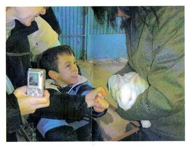 Daniel ha dicho que le ha gustado ir al teatro y la obra que ha visto. Escuchar cuentos le fascina. Pero eso ha sido hoy. El viernes los chicos y adultos del colegio se fueron a ver animales y plantas a la Granja-escuela de Movera. Daniel se fue un poco protestón porque su madre le puso una capa de ropa de más, pues hacía frío y la mañana al aire libre iba a ser larga. Pero Daniel-gruñón dio pronto paso al que veis en la foto, disfrutando del contacto con los bichos. Me dijo Inma que volvió a casa con tierra por entre todas las capas de su ropa.