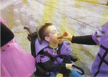 Está pendiente que empiece en el colegio un programa con una terapia experiemental dirigida a paliar los problemas de la disfagia (dificultad para la deglución). Así que esperamos que también le ayude a él y nos proporcione a los demás algunas pautas con las que trabajar.