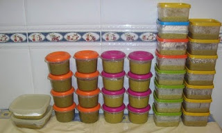 Bueno, un poco exagerada la cuestión de los tupper, es cierto. Aunque soy testigo de que hay días en que la veo completar un tupper detrás de otro, para ternerlos congelados y luego ir sacando conforme los necesita para la alimentación de su retoño, Daniel el gourmet. Sobre todo en verano, cuando no hay comedor escolar: entonces toca preparar triturados para la comida y la cena, procurando que haya posibilidad de alternar y que así Daniel no se aburra. Porque es cierto que los alimentos cocinados y triturados pierden buena parte de su personalidad individual y llegan a cansar. Inma, al cabo de estos años, se ha convertido en una auténtica especialista en la cocina de triturados (también en la no triturada, tengo que decirlo), de tal manera que Daniel ha desarrollado un auténtico gusto culinario de gourmet. En sus triturados cabe casi todo: además de las verduras, hortalizas, pasta, arroz… en sus distintas posibilidades, nunca falta el pescado o la carne: desde el rapé a la plancha o en salsa hasta los langostinos, pasando por la merluza rebozada, el gallo frito, el lenguado, etc, etc, hasta casi todas las carnes (ternera guisada o a la plancha, pollo guisadito, pavo (le pirra)… Uno de los platos preferidos de Daniel es el rancho (patatas guisadas con arroz y carne), o los macarrones, claro, ¿cómo no? -acompañados muchas veces de sanjacobos-… Una gran variedad, de veras.