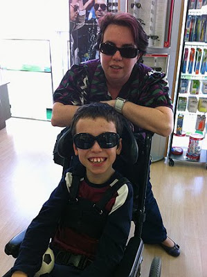 Según Inma (Lamima, madre de Ainhoa y Daniel -otro Daniel genial: es curioso que sean dos Inmas con dos Daniles hijos, je), mi sobrino está muy guapo con gafas. En esta ocasión Lamima me deberá reconocer que le quedan un pelín exageradas. Cosa que a él le ha dado exactamente lo mismo, claro. Le encantan las gafas. Hoy me ha dado nuevamente su visto bueno a estas de sol: ando aprovechando una estupenda oferta de una óptica y renuevo mi parque gafístico, un poco deteriorado ya. Daniel ha posado en plan artista total junto a su madre.
