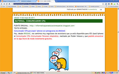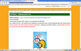 Precisamente en uno de los post se recoge el desarrollo de una aplicación para iPhon, iPad e iPod a base de pictogramas realizados en ARASAAC. Es realmente buena.