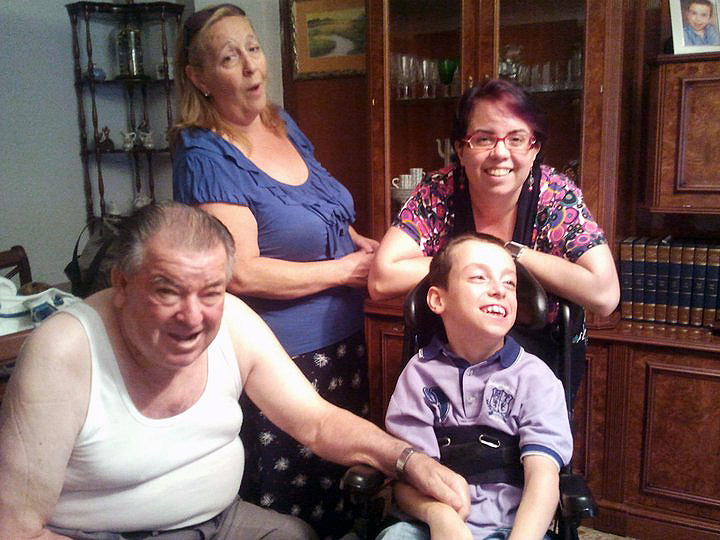 Ayer tuvo tres celebraciones: en el campamento, por la tarde en casa de los abuelos Julio y Rosario (estuvimos casi toda la familia) y después por la tarde-noche con el resto de la familia: los tíos Raquel y Paco y los primos Víctor y Luzía. A esta última celebración llegó ya un poco «hecho polvo» y se le ve en las fotos que el sueño se va apoderando de sus ojillos. Os dejamos un par de fotos con los primos: el ovillo contorsionista que lucha con el tío Jorge, mientras Daniel se troncha, es Víctor, que no se suele dejar fotografiar, y la que provoca con su beso esa expresión de arrobamiento (ayudada por el sueño) en su primo es Luzía. Y también ponemos otra foto del rato de celebración en casa de los abuelos: está en ella el abuelo Julio, la tía Eugenia e Inma (mamá – mammmiiiii – madreeeee / según el momento y la petición: ya hablaremos de ésto).