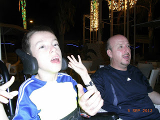 Y es que es muy difícil decir Jorge, por ejemplo. Hace ya un porrón de años – cuando normalmente nunca decía ni pamplona, porque no podía hacerlo físicamente-, cuando era todavía muy pequeño, la logopeda de Atención Temprana, al oírle emitir un sonido muy próximo a la «g», una guturalización muy clara, nos dijo que este sonido era muy complicado para la gente que tenía problemas de afasía, para los chicos con parálisis cerebral afectados de afasia.