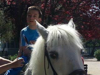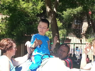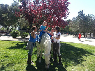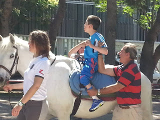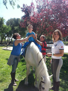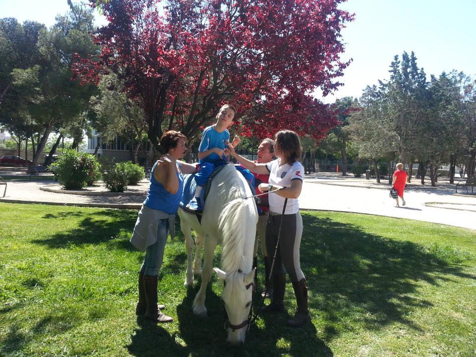 Os mostramos algunas fotografías que ayer le hizo a Daniel su madre durante la última sesión de hipoterapia de este curso. Las sesiones se llevan a cabo en el Parque de la Granja, que está pegado al colegio, por lo que, como veis, el entorno es realmente agradable.