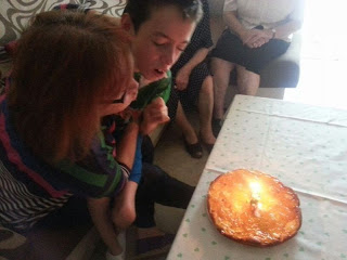 Inma se lo curró haciendo sendas tartas, ricas, ricas. Una para el campamento, donde hicieron una fiestuqui super para celebrar el cumpleaños de Daniel, y otra para casa.