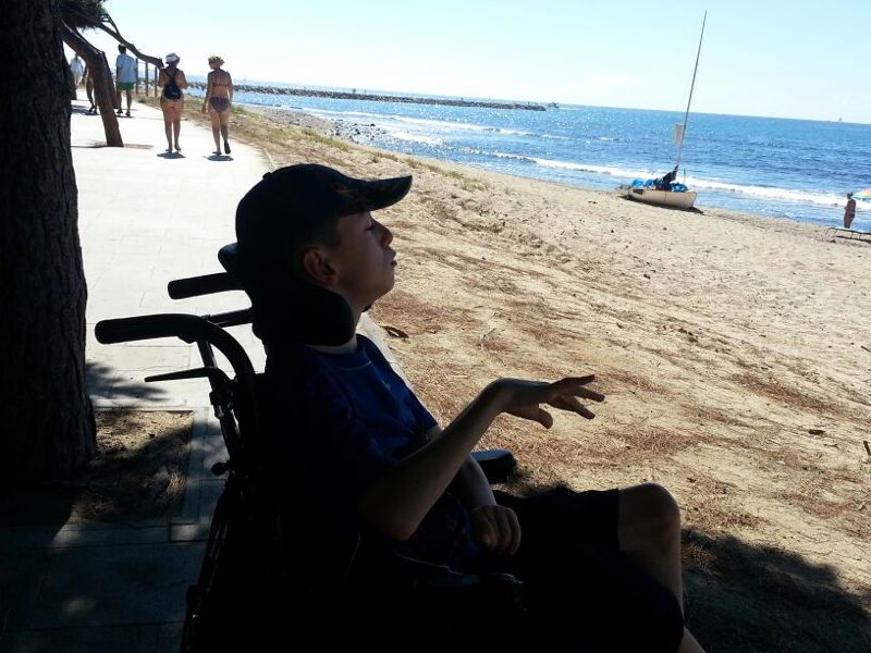 Me mandan estas reveladoras imágenes. Me cuentan que insiste: ¡playa, playa!, mientras voltea la cabeza en dirección al mar, una y otra vez. Los progenitores de Daniel interpretan agudamente que su chaval no va a perdonar el baño… Todos los veranos, por lo menos, algun bañito en el mar. Esperemos noticias sobre cómo ha ido. Hay algunos inconvenientes, tanto físicos, como logísticos -claro-. Siempre los solventan. Como este tema de las playas adaptadas y no adaptadas tiene su miga, lo abordamos el próximo post, una vez que tengamos crónica playera.