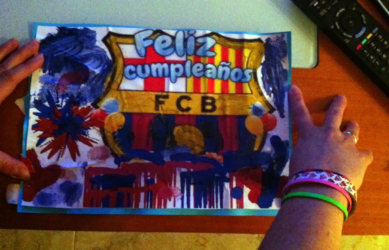 Hoy es el cumpleaños de Jorge. Yo que soy mayor (ya mayor que muchas cosas y que muchos), recuerdo bien el día en que mi hermano y padre de mi sobrino llegó a este mundo (era sábado); recuerdo bien la tarde en que me llevaron a conocerle a la clínica, apenas unas horas después de su nacimiento. Recuerdo muchas cosas, que es lo que les pasa a las hermanas mayores y a las tías. Lo que no recuerdo es cuándo se hizo del Barça. Daniel, en un sentimiento de identificación con su padre (vínculo fortísimo entre ambos, vínculo completamente atávico entre ambos) también es del Barça. Aunque ahora menos, absolutamente volcado y entregado al baloncesto como está ahora, especialmente al CAI Zaragoza. Su distanciamiento respecto al fútbol no le ha impedido, sin embargo, compartir con su padre un regalo tan colorista. Ahora hay que esperar para ver cuál será la sorpresa para su madre, que también cumple años el viernes.