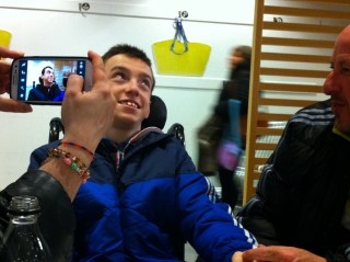 Como he intentado explicar arriba, poco a poco él va avanzando en el control de los músculos que nos permiten hablar. También en la adquisición de vocabulario. Practica mucho en ello. En casa repite constantemente palabras que los demás le decimos. Lo hace de una forma voluntaria, en absoluto provocada. Le gusta hablar. No lleva muchos años pudiéndolo hacer. Se nota que disfruta y es feliz con cada conquista. La forma en que usamos el lenguaje implica, como sabemos, también una actitud. Me llamó la atención en este sentido, no hace mucho, una cosa en referencia a Daniel. En sus primeros años de vida Daniel gritaba, lloraba, pero prácticamente “no hablaba”, sólo algunos sonidos similares a los balbuceos iniciales de los niños, que luego fueron algo más elaborados y de vez en cuando alguna palabra suelta completa y llena de sentido que nos sorprendía tremendamente y que venía a ser la señal de que el pensamiento de Daniel iba estructurándose de alguna manera, aunque no pudiéramos tener demasiadas referencias al respecto. La fase siguiente consistió en hablar en “inglés”. Inglés de verdad, reglado (one, two… y así) e inglés simulado del de toda la vida (o sea guachi guachi…). La combinación de ambas fórmulas nos dio mucho de sí mientras veíamos partidos de tenis, deporte al que Daniel es bastante aficionado. Repetir los términos de la jerga tenística en diferentes idiomas ha sido una de las maneras en que, de nuevo de manera lúdica, Daniel ha practicado sonidos. Las combinaciones alocadas que conseguía hacer eran una diversión total.. Tanto, que ahora se niega a abandonar la costumbre. Viendo un partido la semana pasada, yo me empeñaba en que repitiera el tanteo de puntos, o las situaciones de juego utilizando los términos reales. E intentaba convencerlo, argumentándole que ahora ya podía, que con un pequeño esfuerzo lo conseguiría. Pero Daniel se aferra a su jeringonza consonántica prácticamente impronunciable basada en la combinación de guturales y palatales a modo guerra de las galaxias, porque es lo que le divierte, demostrando con ello una adolescente libertad de elección y afirmación de lo más madura, pues preserva un territorio de diversión sin más, sin motivación precisa, hablar por hablar, estéticamente, gozosamente.