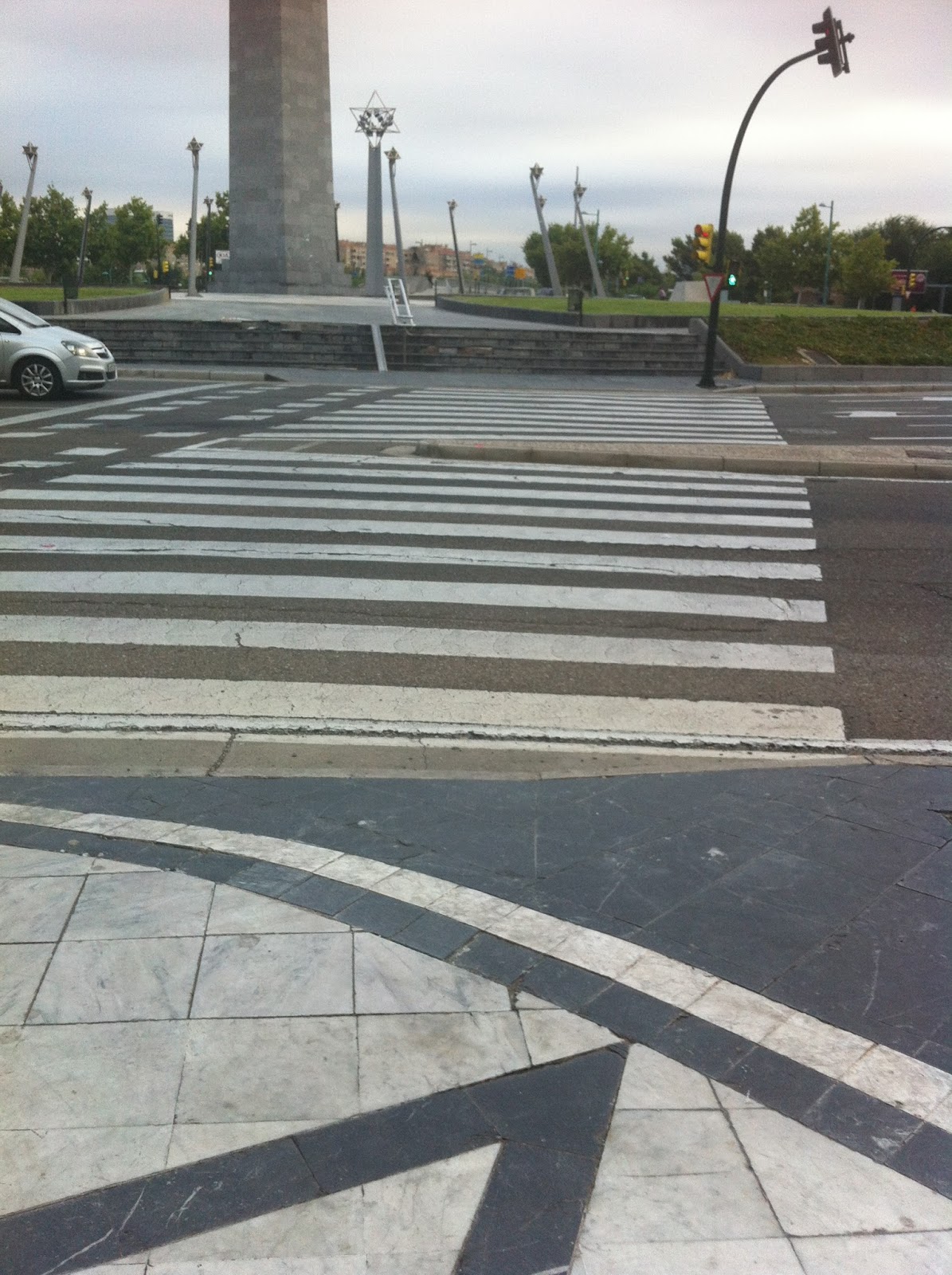 Claro que el propio ayuntamiento zaragozano tendría que aplicarse a sí mismo un poco de autoinspección en este tema de la accesibilidad. Estas fotos que traigo son de la Plaza Europa. Es un paso que yo calificaría de accesibilidad delirante.