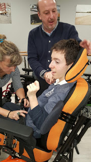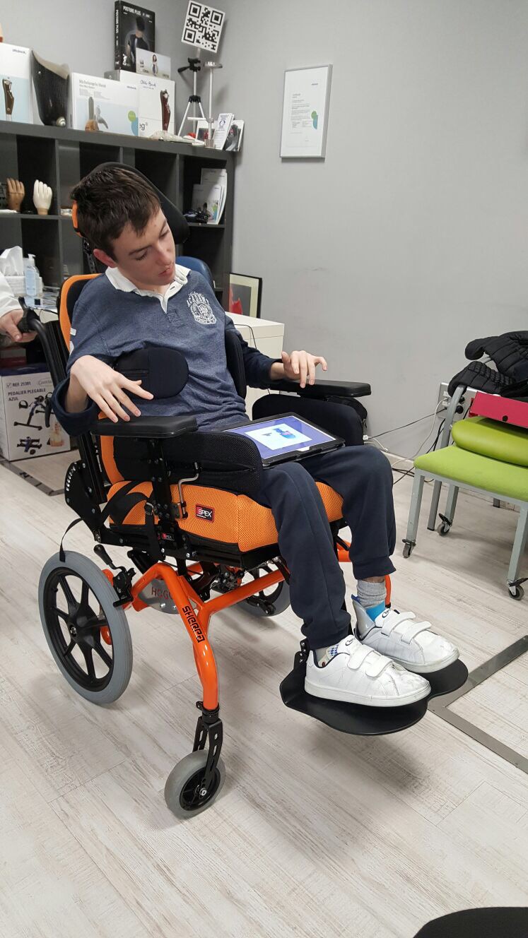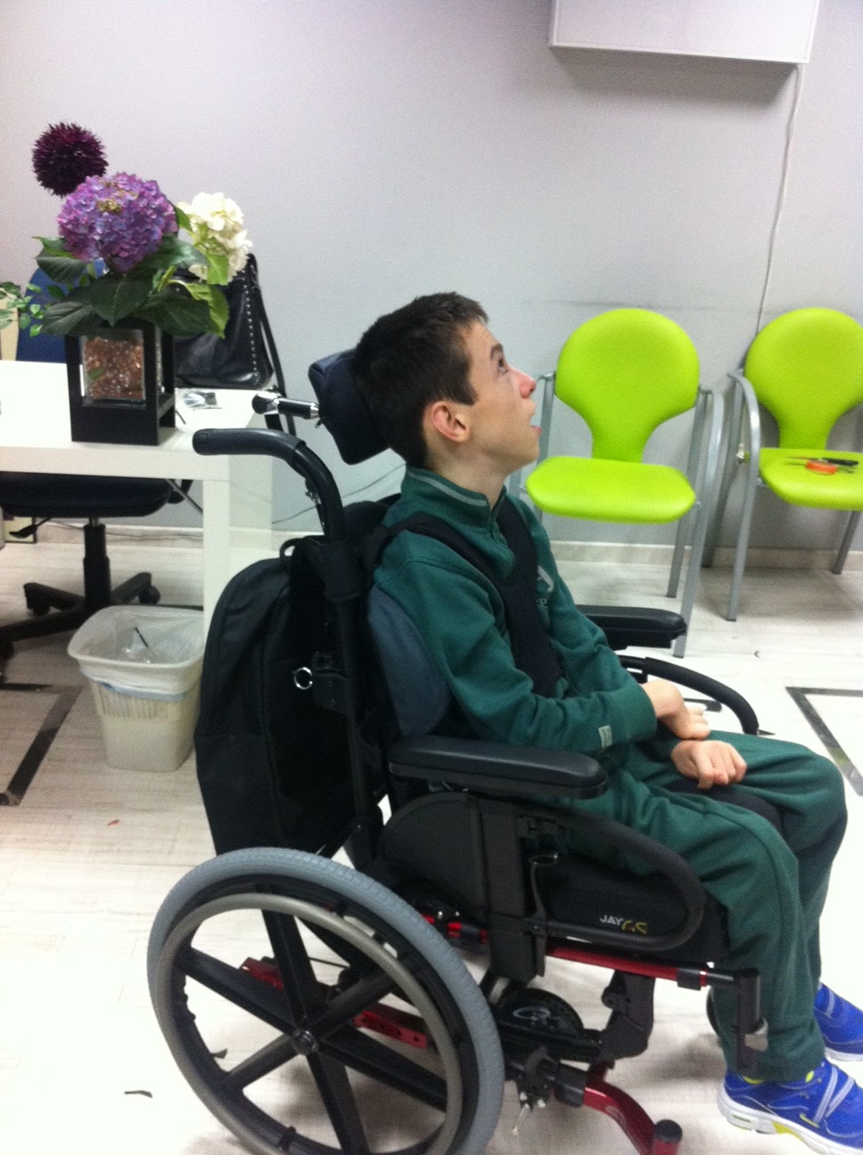 En fin, el aumento de estatura y complexión de Daniel (una evolución positiva que es algo genial, fantástico, claro), junto con la necesidad de proteger su columna y su espalda, han hecho inevitable el cambio de silla. La que han encargado finalmente sus padres a la ortopedia de referencia no es exactamente la que muestra las primeras fotos. Enrique, el ortopédico, ha hecho una combinación personalizada para Daniel, acorde a sus características físicas y teniendo en cuenta también sus problemas de columna y cadera. El asunto de las caderas viene de lejos. En la parálisis cerebral no es infrecuente que aparezca tempranamente la luxación de las caderas. La espasticidad muscular dificulta la expansión natural de la estructura ósea. Por eso ahora, con el crecimiento de la adolescencia, volvemos a encontrarnos con problemas de este tipo que afectan a la disposición de la columna. Esperamos que con el respaldo especial de la nueva silla se pueda evitar el corsé. Os contamos estas cosas para que se pueda comprender medianamente que el cambio de silla no es un capricho en absoluto. Es una necesidad imperiosa para adecuar una estructura, -que en realidad es para Daniel como un esqueleto exterior-, a su momento vital, y para evitar que en el futuro empeoren algunas patologías que le causen dolor.