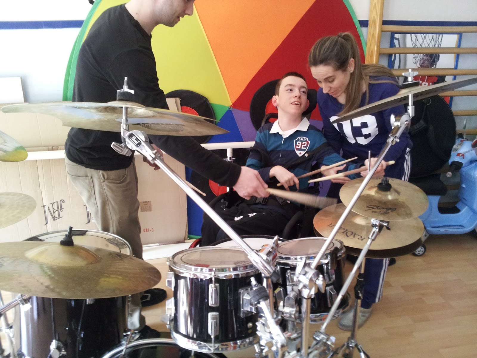 | No tenemos imágenes de la visita al Túnel de la Müsica, pero esta sesión en el CPEE Ángel Riviere, ilustra bien la pasión de Daniel por la música |