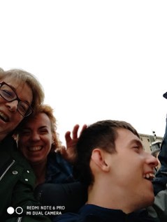 | Dos de las cocineras de «Triturado Gourmet» intentado convencer a Daniel de que pose para la foto |