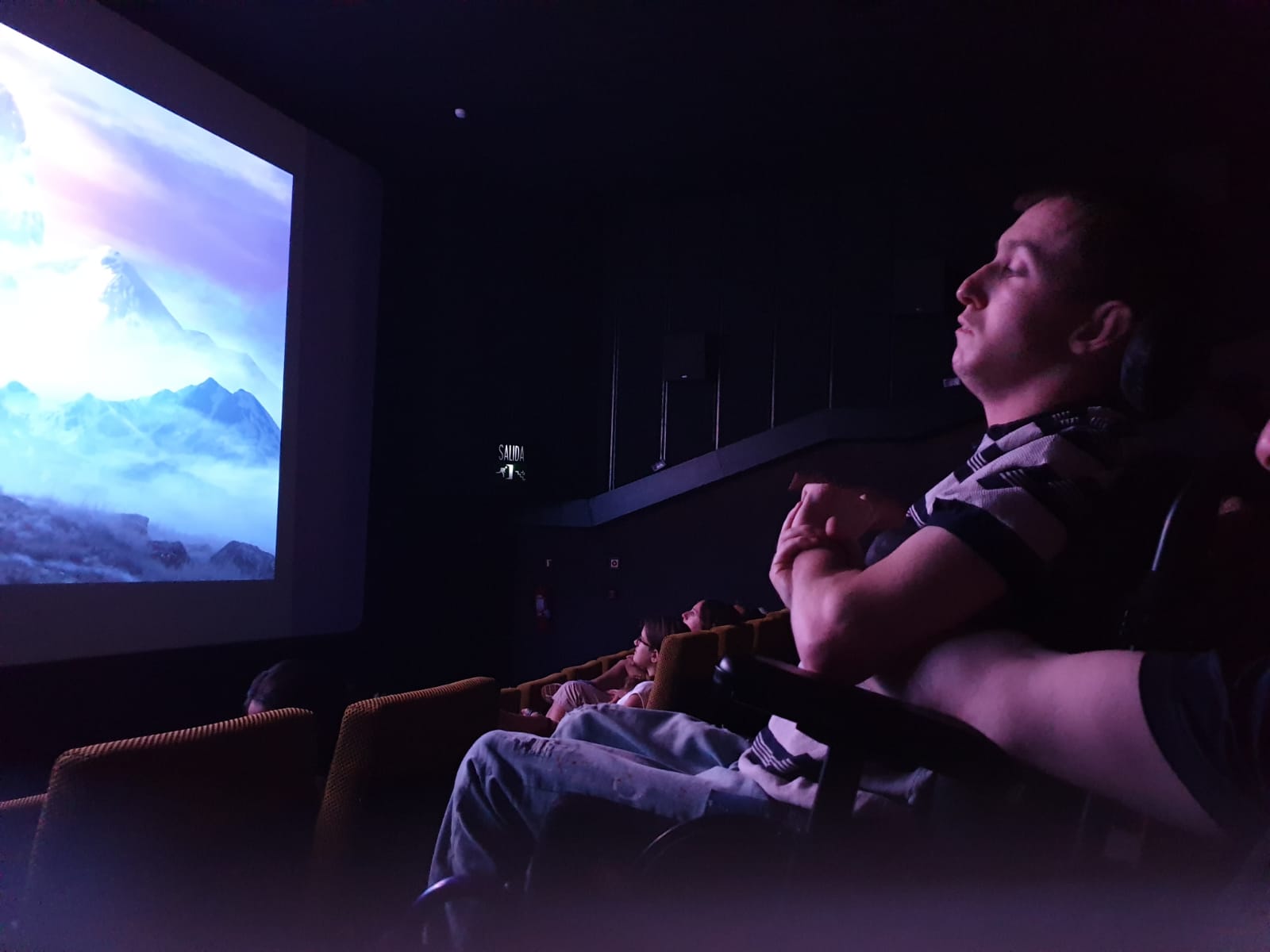 Fue Jorge el que dijo de probar y ver qué pasaba. “Si responde bien, no se aburre ni se altera mucho, tendríamos una actividad más para las tardes de los sábados”, razonó el padre de mi sobrino. “Vamos a ver qué pasa; si se inquieta mucho, pues nos vamos y listo”. Pero no se inquietó; bueno, solamente un poquito al principio, porque no comenzaba la película nada más llegar a la sala. Esperar no es un verbo que Daniel conjugue. Casi ni se sobresaltó, a pesar del atronador audio (en los cines no piensan en absoluto en las personas con hiperacusia; bueno tampoco piensan en la sordera que pueden acabar produciendo en cualquiera de nosotros). De vez en cuando, Daniel interpelaba a su padre, y entonces éste le explicaba lo que estaba pasando y Daniel volvía a la película sin más. Salió un poco alucinado, pero en cuanto reconectó se mostró totalmente contento y feliz y con ganas de repetir.