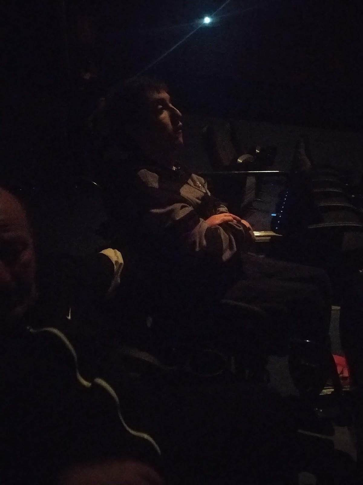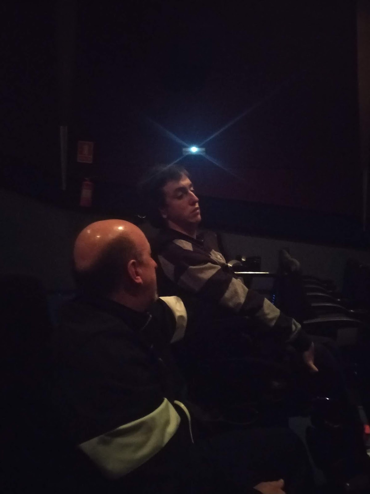 ¿Y por qué cito los cines? Porque quiero agradecer, sobre todo al trabajador que nos acompañó hasta nuestras localidades, su disposición y empatía. Ir al cine en silla de ruedas sigue siendo bastante complicado. En nuestro caso, doblemente complicado, porque alguien tiene que sentarse al lado (junto a, quiero decir, no detrás) de Daniel obligatoriamente, y las habituales ubicaciones reservadas para las sillas de ruedas muchas veces no lo permiten. De hecho, esta vez situamos finalmente a Daniel con su silla en el pasillo, junto a la butaca extrema, con toda la comprensión y facilidades por parte de este amable trabajador, que además indicaba a todos los demás espectadores de nuestra misma fila que, por favor, dieran la vuelta para ocupar sus localidades. Muchas gracias también a ellos.