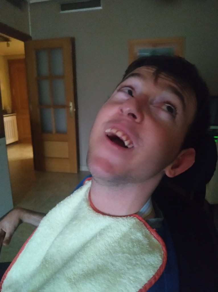 Pienso todo esto y, de paso, os lo cuento, porque ayer ocurrió uno de esos episodios en que dices: pero mira que has sido zoquete, tía Luisa … Estábamos tan ricamente prestándole mucha atención a Chopin (ver rostro de Daniel ilustrativo de la beatitud del momento chopiniano). De repente mi sobrino suelta en su lenguaje «vocálico» (Daniel, por el tema de la espasticidad tiene muchas dificultades con las consonantes): «I-A». Me quedo como in albis, claro, y pregunto: ¿qué pasa Daniel?. «A-I», contesta. Buf, me digo, a pesar de que una está acostumbrada, le conoce los gestos, los rictus, las intenciones. Me olvido de la enunciación vocálica y le observo. Por la tensión en que se manifiesta todo él entero y su cara, deduzco que algo le molesta. Como había merendado y las digestiones van cómo van (la espasticidad es una alien que todo lo llena), pienso «va a ser el estómago, la tripa». Así que digo, como para la galería: vamos a inclinar la silla y así, un poco tumbado, estarás mejor; te hago un masajillo en la tripa. La mirada y la sonrisa de mi sobrino me dicen que he acertado. Venga, ya está, me relajo. Pero no siempre es tan sencillo, ni tan inmediata la solución. Y eso genera ansiedad, preocupación. Un poquito de impotencia. también.
