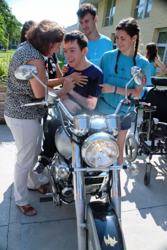 Ay, ay, qué rabia. Resulta que en Los Pueyos habían pensado en Daniel para ser uno de sus chicos/as que se montarán en estos coches tan chulos de la Fundación Step by Step para participar en la ceremonia oficial de arranque del Cierzo Rally Ejército de Tierra, que tiene una categoría de ParaBaja, para inclusión deportiva en el ámbito automovlístico. Los padres de Daniel dudaron, porque saben que le pirra subir a coches y motos, y sobre todo le pirra y la fiesta. Como prueba, esta imagen de hace ya unos años.
